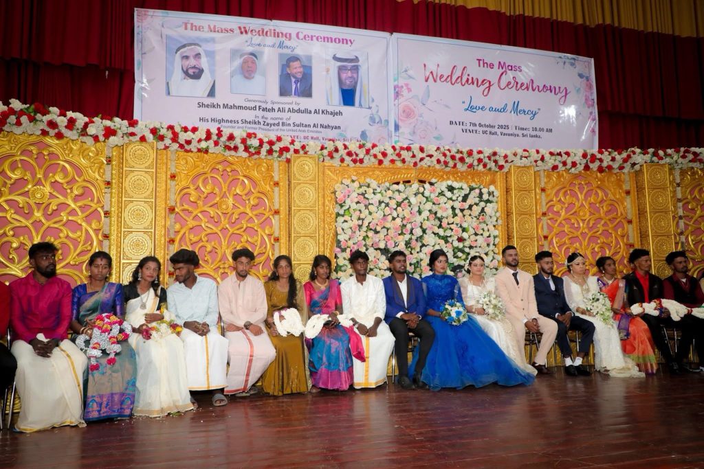 The second Mass Wedding Ceremony under the “Mawaddatha wa Rahmah” (Affection and Mercy) initiative, launched by Hon. Rishad Bathiudeen, Member of Parliament and Leader of the All Ceylon Makkal Congress (ACMC), was successfully held on 7th October 2025 in Vavuniya.