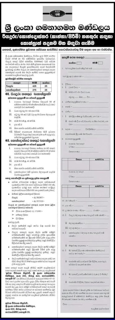 The Sri Lanka Transport Board (SLTB) has announced the recruitment of drivers and conductors on a contract basis, inviting applications from eligible individuals across the country.