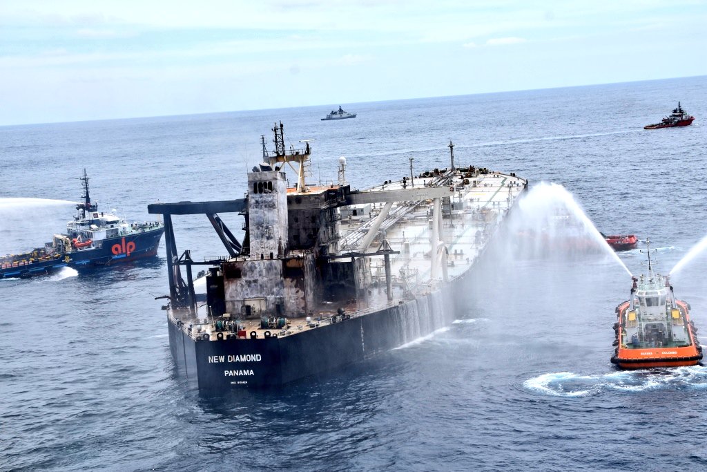 (UTV | COLOMBO) – India closely monitoring fire-fighting efforts on MT New Diamond, presently 70 km away from Sri Lankan coast. Additional assets including Emergency Towing Vessel Ocean Bliss now at scene,