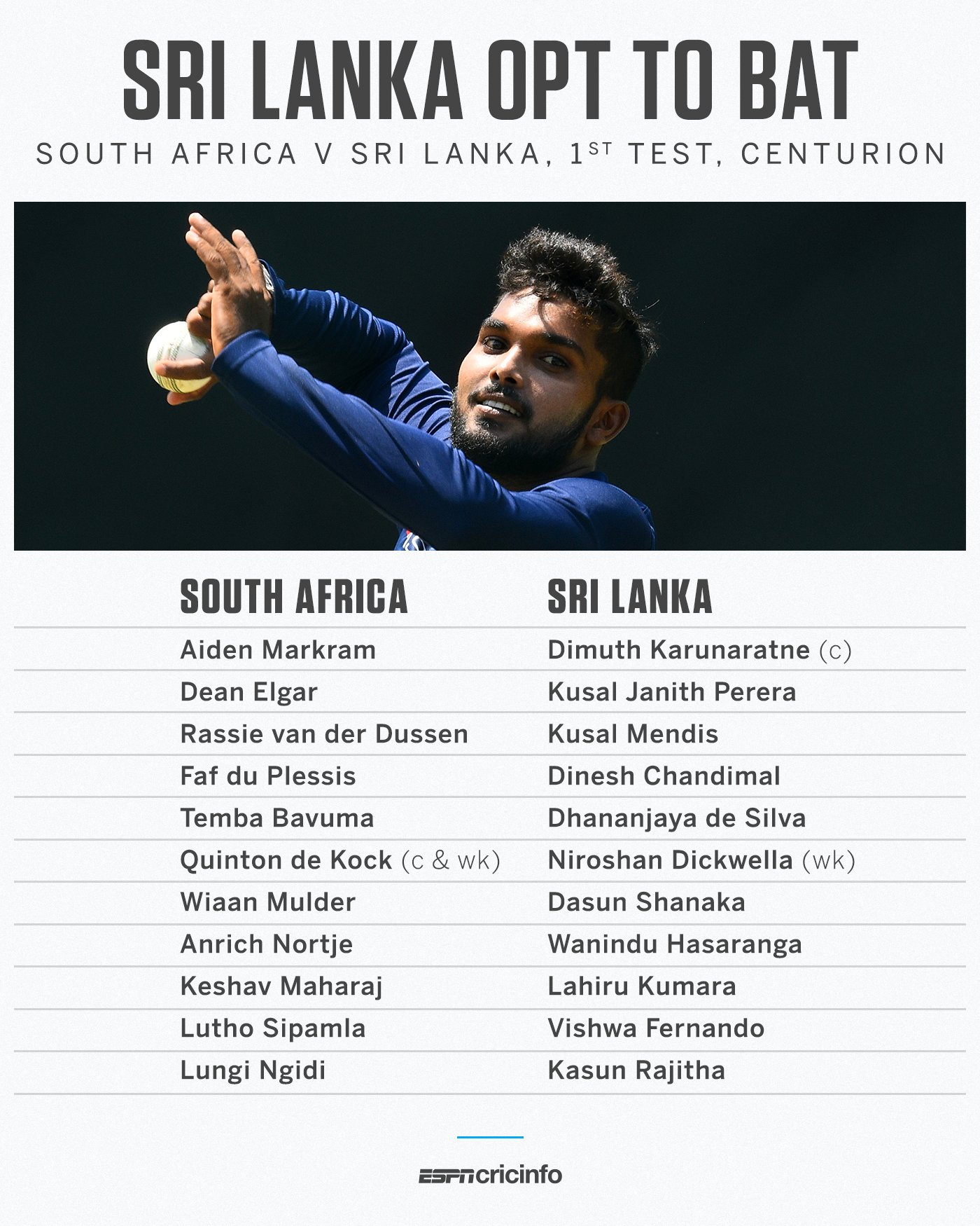 (UTV | SOUTH AFRICA) – The Boxing Day action moves westwards to South Africa, where Sri Lanka have won the toss in Centurion and decided to bat first.